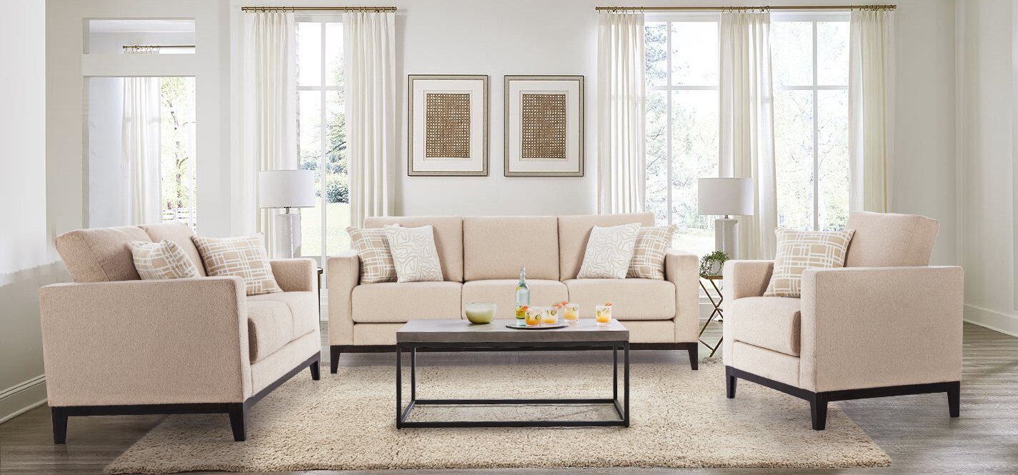 This sofa exemplifies refined comfort, featuring deep, plush seating with chic, patterned cushions and gracefully crafted dark wooden legs, crafted to elevate the sophistication of elegant interiors.