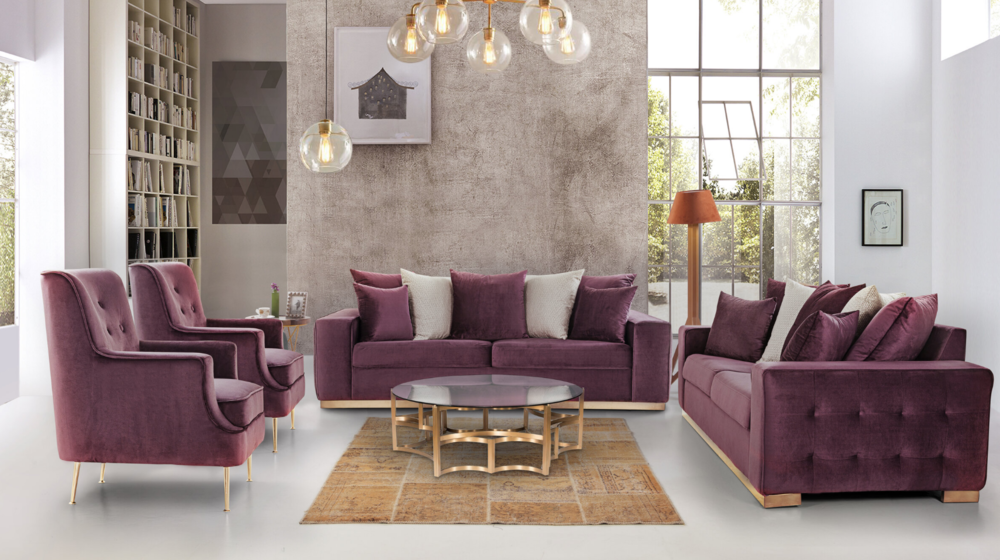 Consider our Madison Deluxe sofa as an example, it has a distinct maroonish purple hue, paired with gold framing. By placing along with other gold complimenting the overall look. Other key furnitures that consumers bring in can have the same distinct gold brassy colour to compliment the sofa furniture.