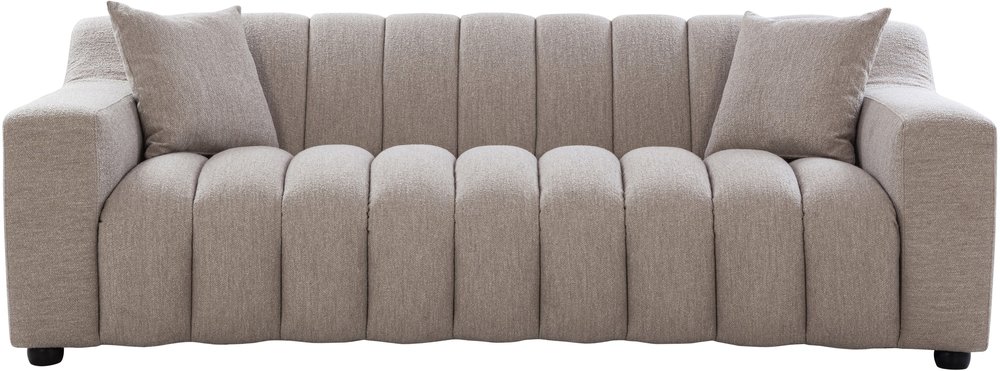 This sofa set features a ribbed design and a clean, tailored silhouette that adds a modern touch to any space. The sleek armrests provide both visual appeal and comfort, making it a perfect blend of style and functionality. Its precise craftsmanship enhances the overall design, offering both luxury and utility in one piece.