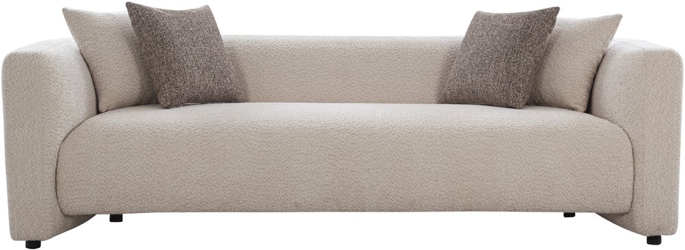 This sofa set features a sleek, structured design with clean, straight lines, offering a contemporary and modern look. The soft upholstery enhances comfort, while the neutral tones and subtle accent pillows add a sophisticated touch, making it perfect for modern living spaces.