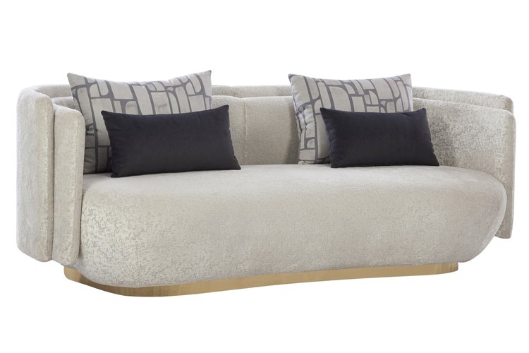 The Clayton Sofa blends modern design with comfort, featuring textured upholstery, sleek curves, and a warm wooden base. Plush cushions and a supportive backrest create an inviting retreat, making it a stylish centerpiece for any contemporary living space.