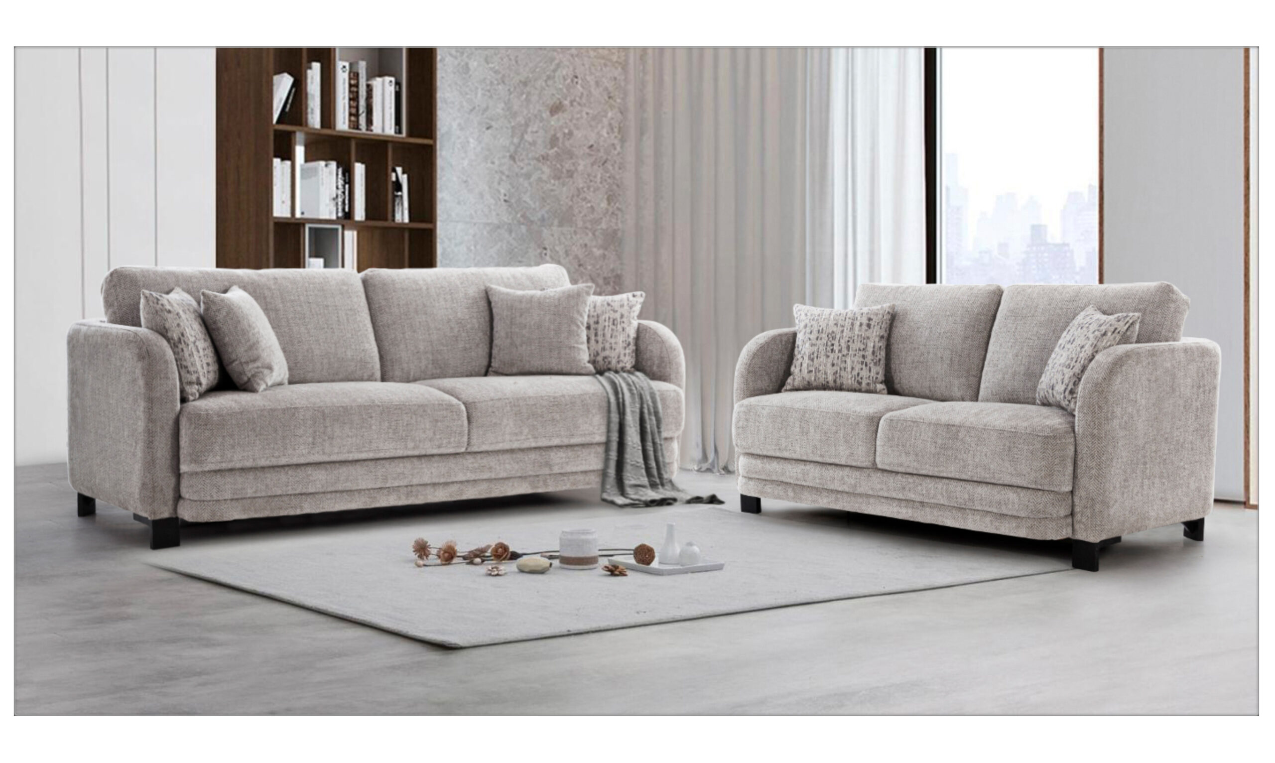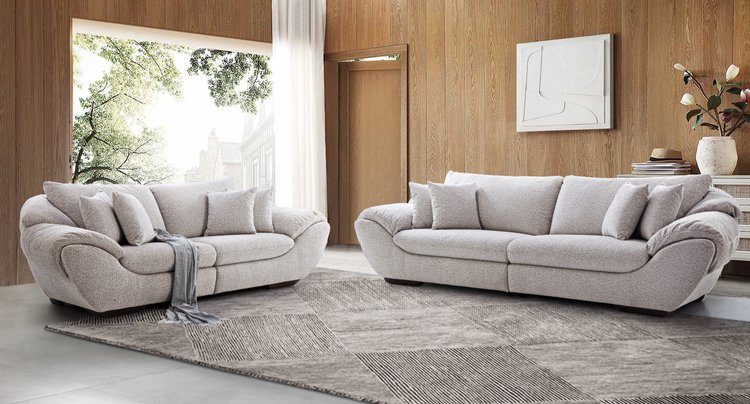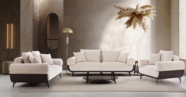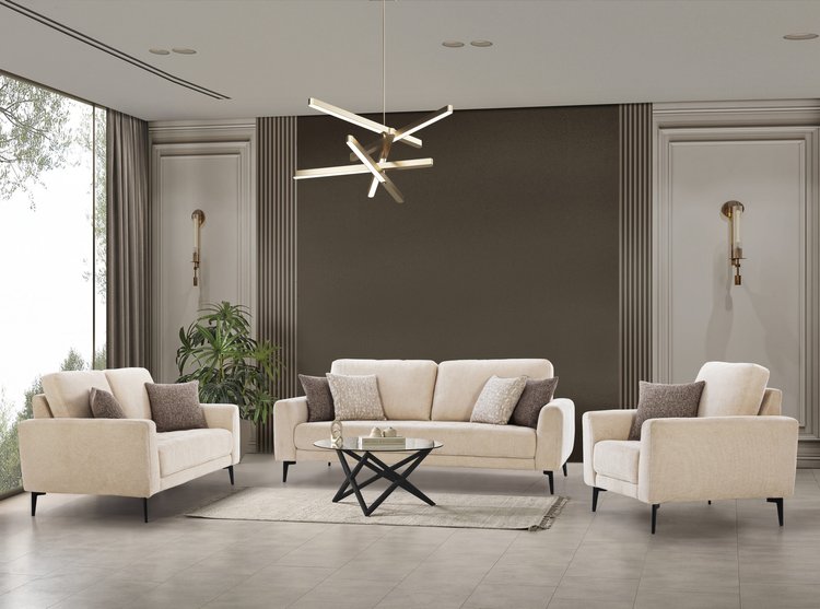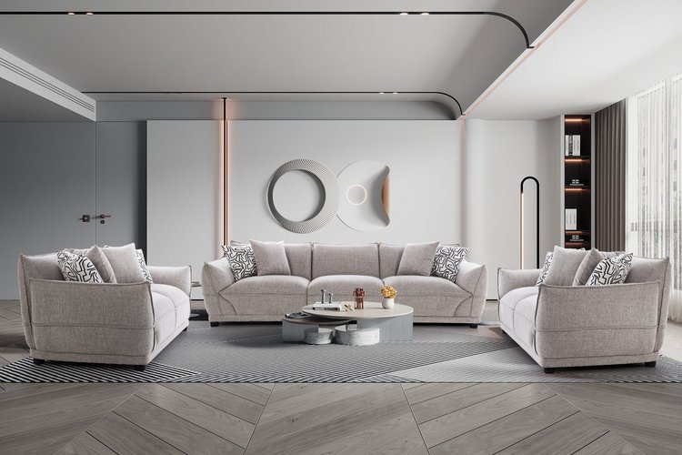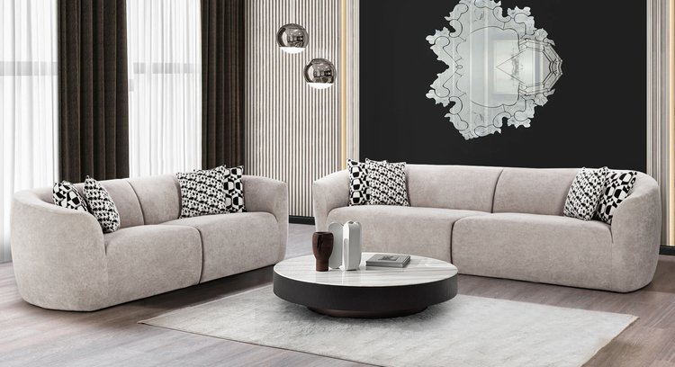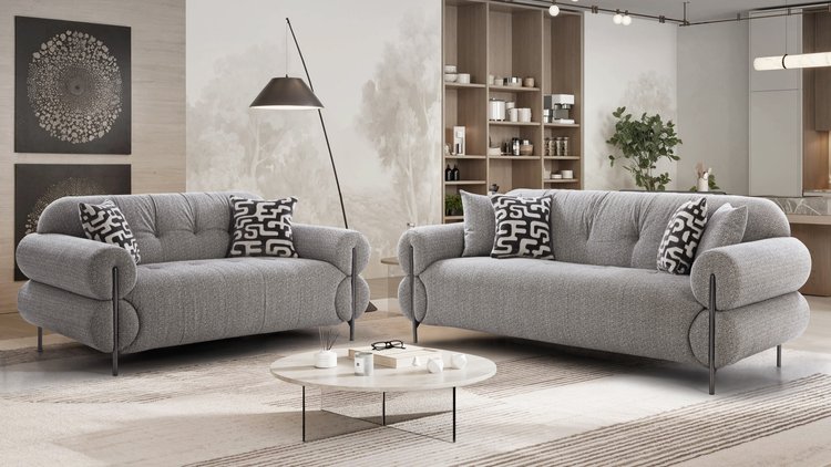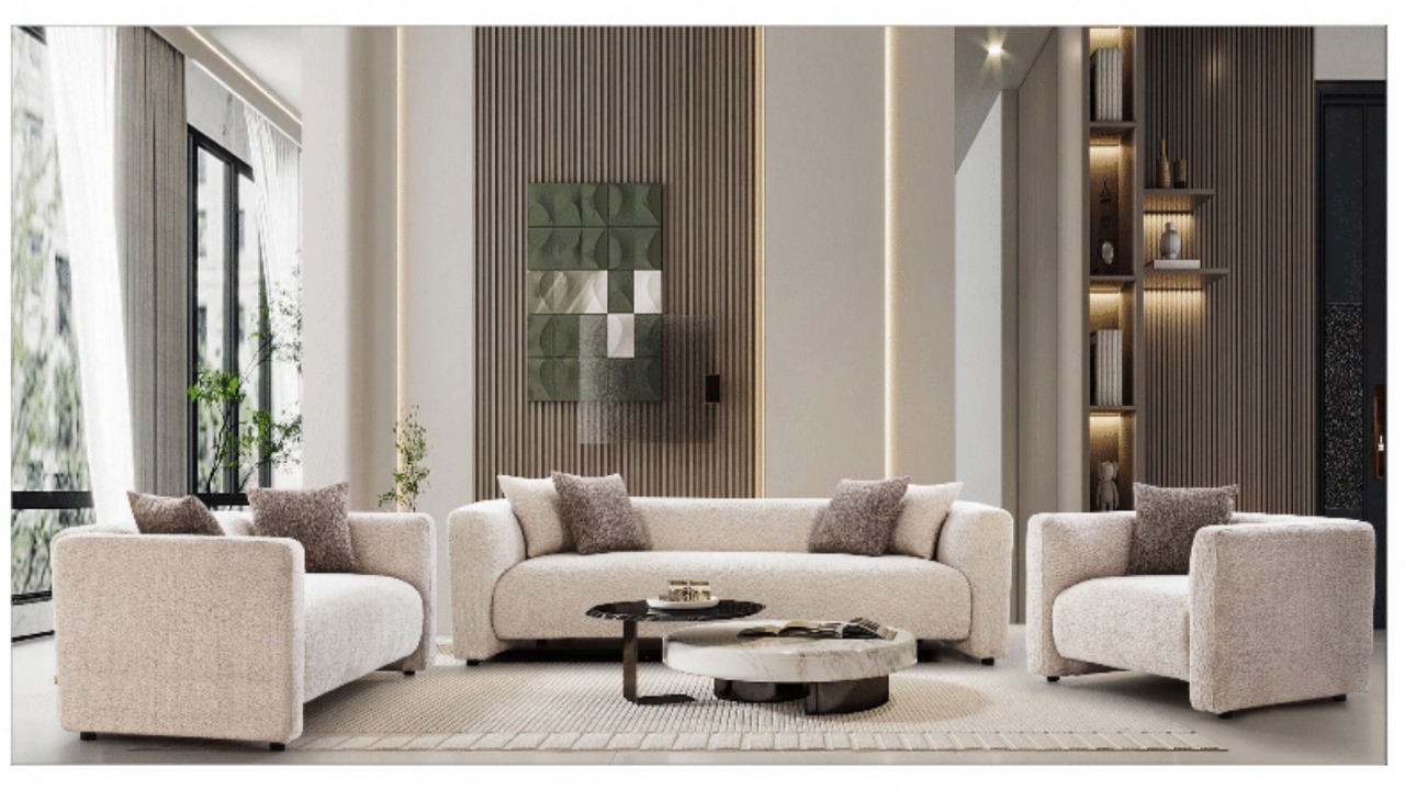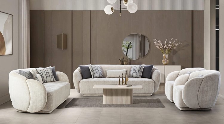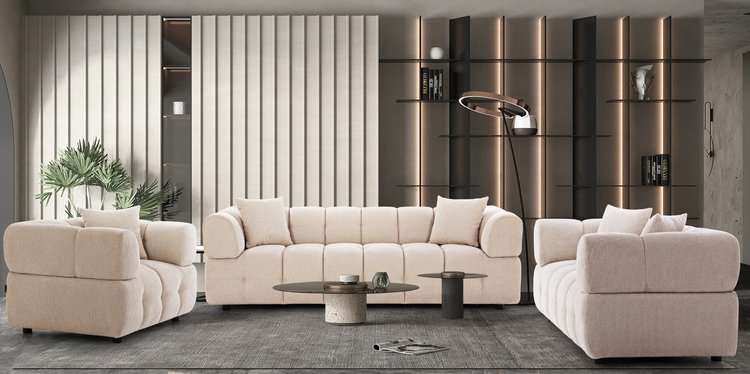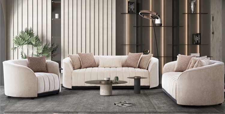 Crafted for luxurious comfort, this sofa set features plush, deeply cushioned seats and soft upholstery, offering a truly inviting experience. The clean, curved arms and subtle design details add a modern sophistication to your space. Ideal for contemporary settings, it blends timeless elegance with exceptional comfort, making it the perfect centerpiece for any living room