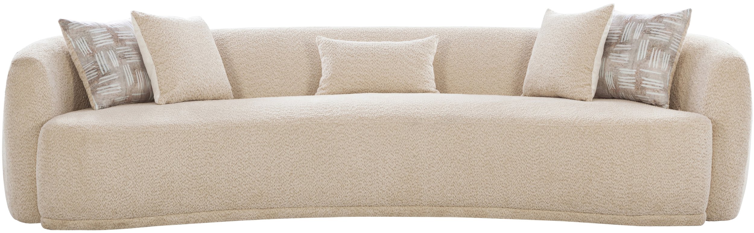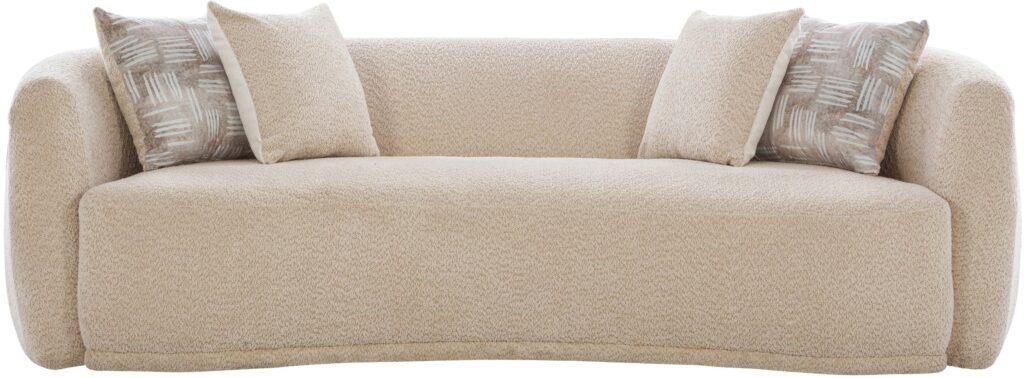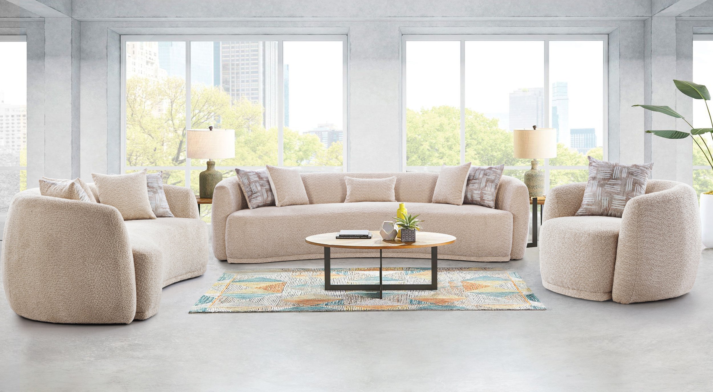 Seamless curves and a rounded armrest define the luxury of this sofa set. Its soft, textured fabric and plush cushions offer ultimate comfort and style, making it the perfect addition to any contemporary living space.