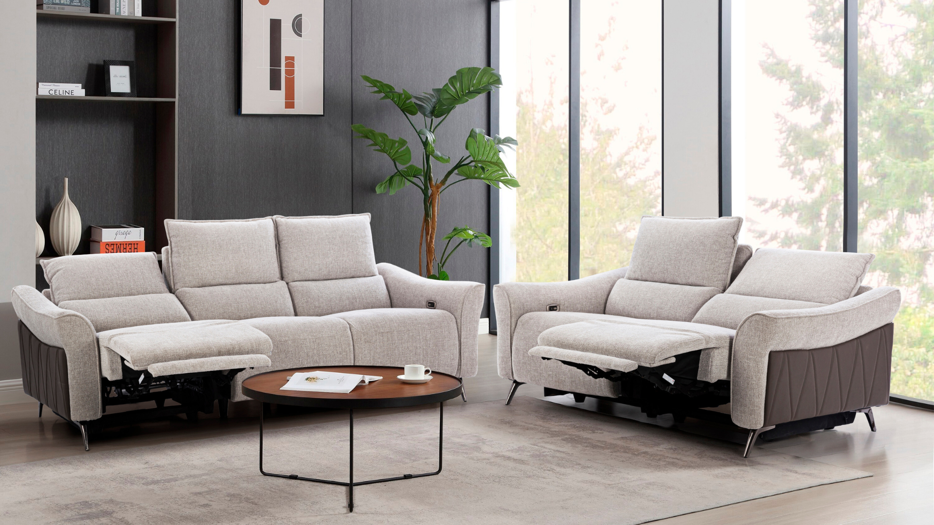 This recliner set delivers exceptional relaxation with its cushy seating and premium soft-touch upholstery. Crafted for everyday comfort, it features refined stitching and ergonomic contours that offer superior support. The smooth reclining mechanism enhances the lounging experience, making it an ideal addition to any modern living room.